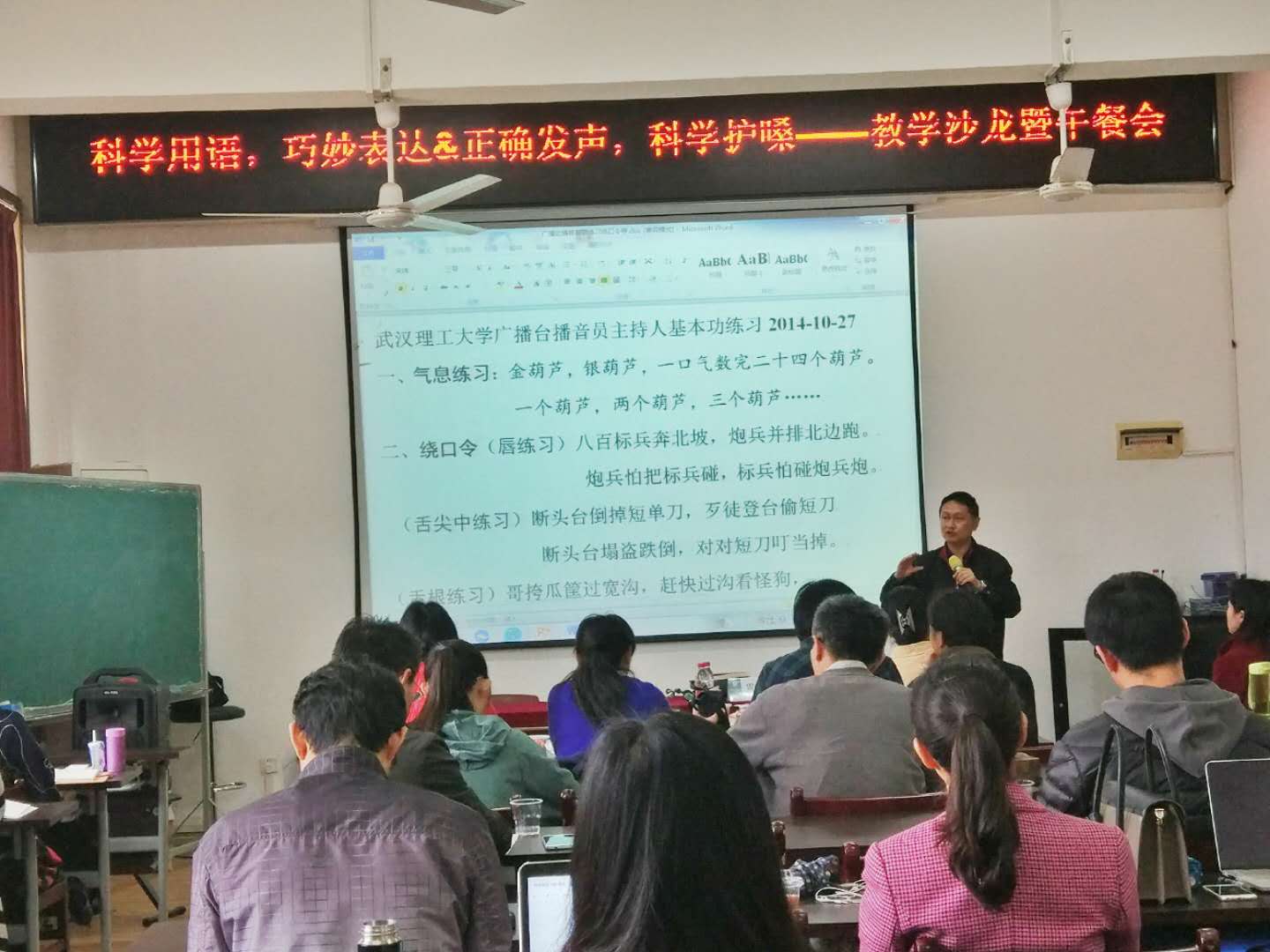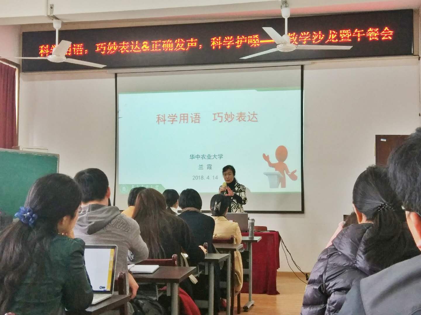 4月14日,365体育手机投注网址邀请了华中农业大学文法学院兰霞副教授和武汉理工大学副研究员雷峻老师来校主持“科学用语,巧妙表达&正确发声,科学护嗓”教学沙龙暨午餐会。