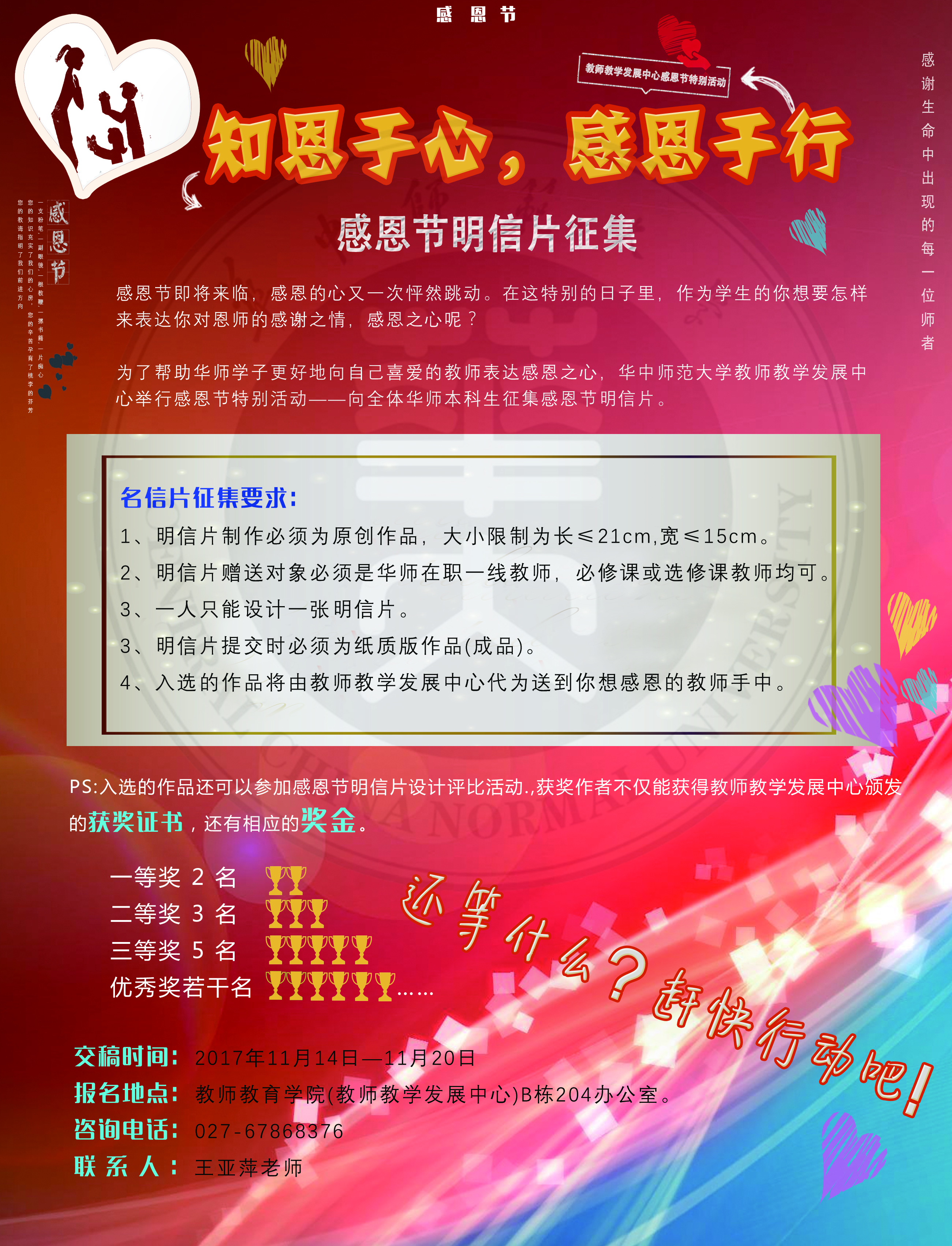 【感恩节特别活动】“知恩于心,感恩于行”——教师教学发展中心感恩节特别活动——征集感恩明信片